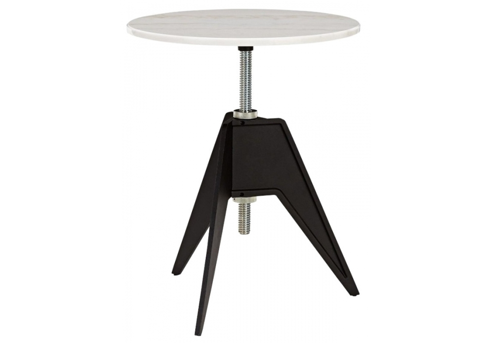 Screw Cafè firmato da Tom Dixon è un tavolino composto da base con treppiede in ghisa e piano in marmo disponibile in diverse finiture e dimensioni. Il filo di alluminio consente altezze multiple.