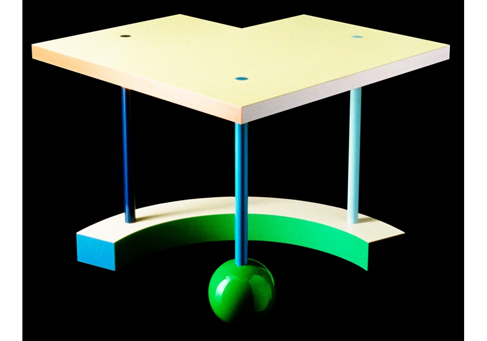 Hollywood firmato da Peter Shire per Memphis Milano è un tavolino realizzato in metallo e laminato plastico.