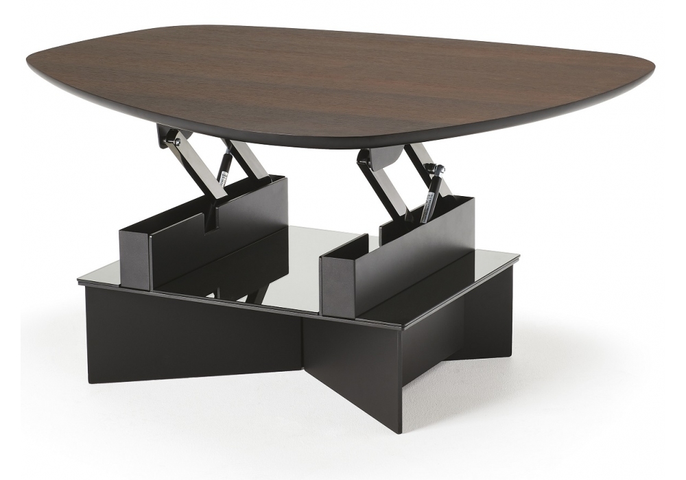 Orlando firmato da STC Studio per Cattelan Italia è un tavolino alzabile con piano disponibile in legno noce Canaletto, rovere bruciato, Olmo tinto poro aperto nero opaco, Brushed Bronze o Brushed Grey. Struttura in metallo verniciato goffrato titanio o nero e cristallo specchiato fumè.