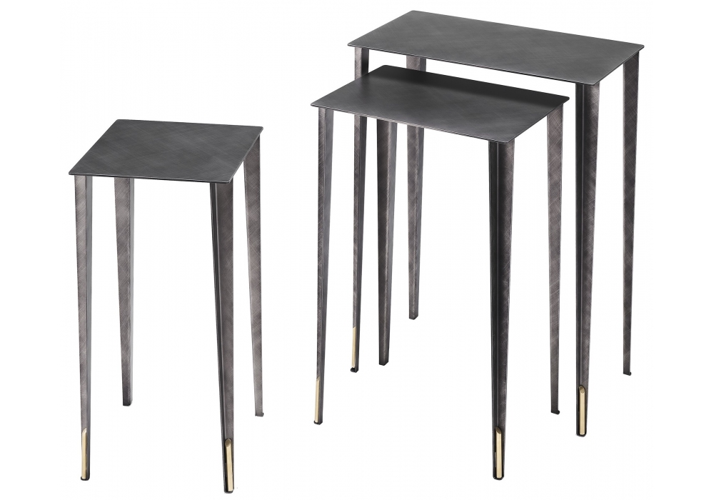 Spillo firmata da Giorgio Cattelan per Cattelan Italia è una collezione di tavolini realizzata con struttura in acciaio brushed Brass, Brushed Bronze, Brushed Grey. Dettagli in ottone.