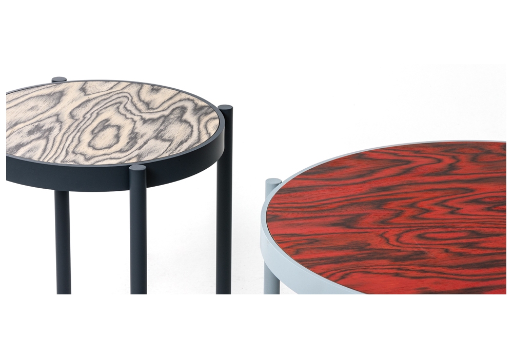 Armada firmato da Doshi e Levien per Moroso è un tavolino con base in tubolare d'acciaio verniciato a polvere e piano in MDF impiallacciato Alpi® o vetro.