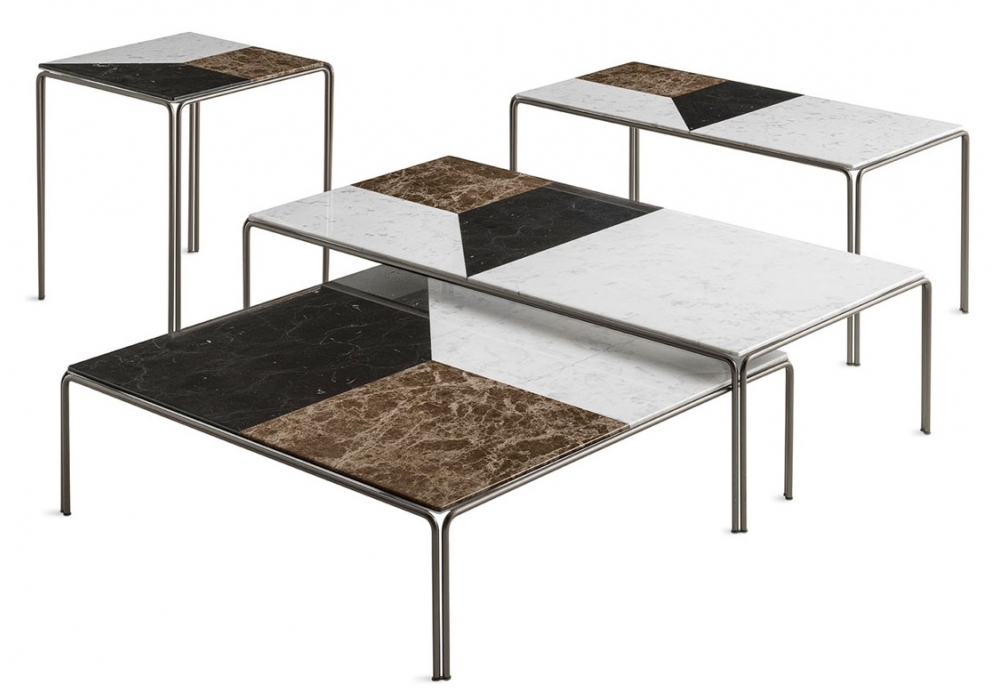 Ragtime firmato da Ludovica & Roberto Palomba per Casamania & Horm è un tavolino realizzato con struttura in metallo verniciato bronzo e piano in marmo Carrara, Emperador e Marquina. Disponibile in diverse dimensioni.