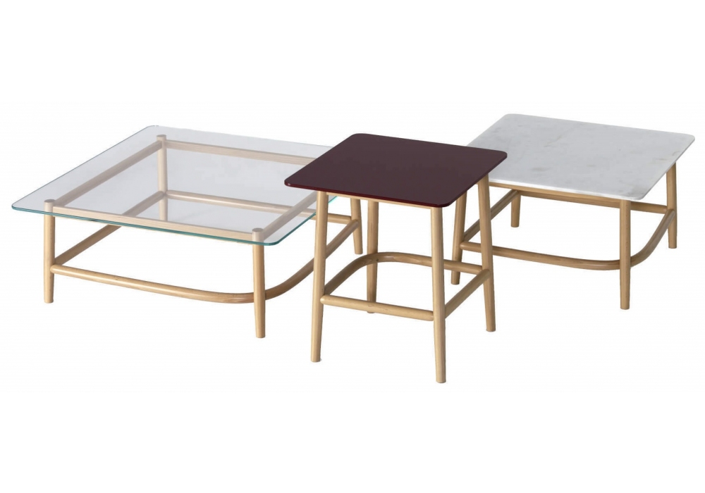 Single Curve firmato da Nendo per Gebrüder Thonet Vienna è un tavolino con struttura in faggio curvato, in diverse finiture e dimensioni. Piano in MDF laccato opaco.