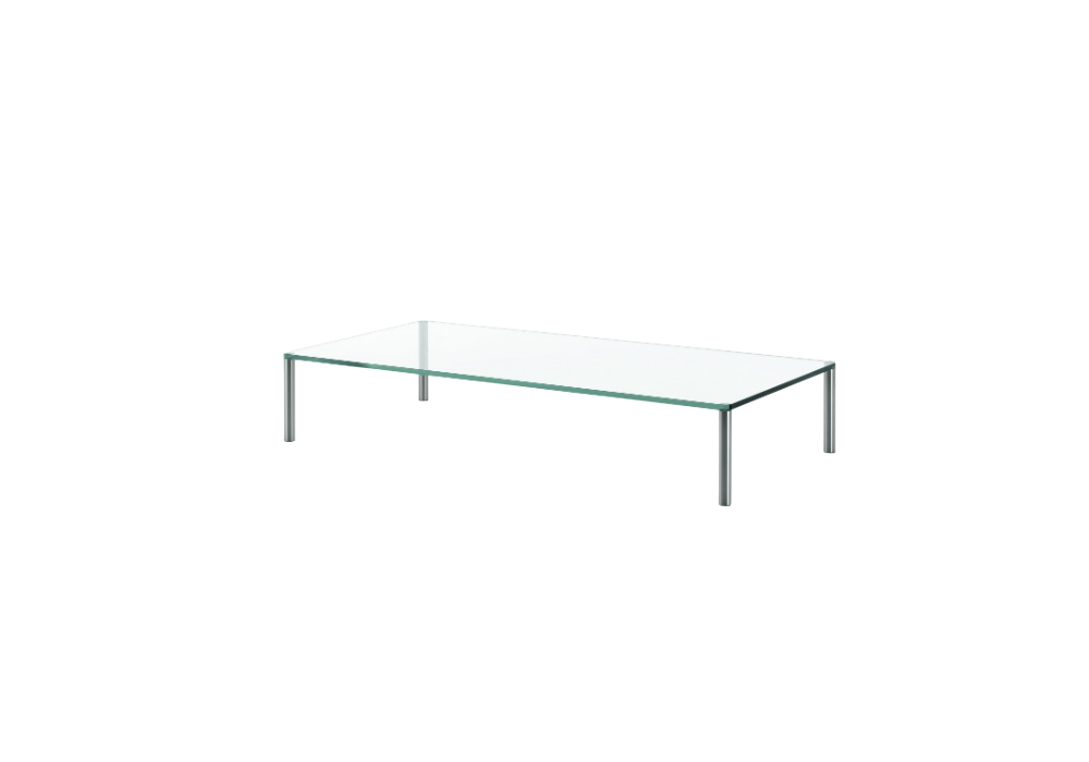 Metal firmato da Piero Lissoni per Glas Italia è un tavolino con piano in cristallo trasparente extralight temperato. Le gambe cilindriche sono realizzate in alluminio spazzolato anodizzato inox o dark brown.