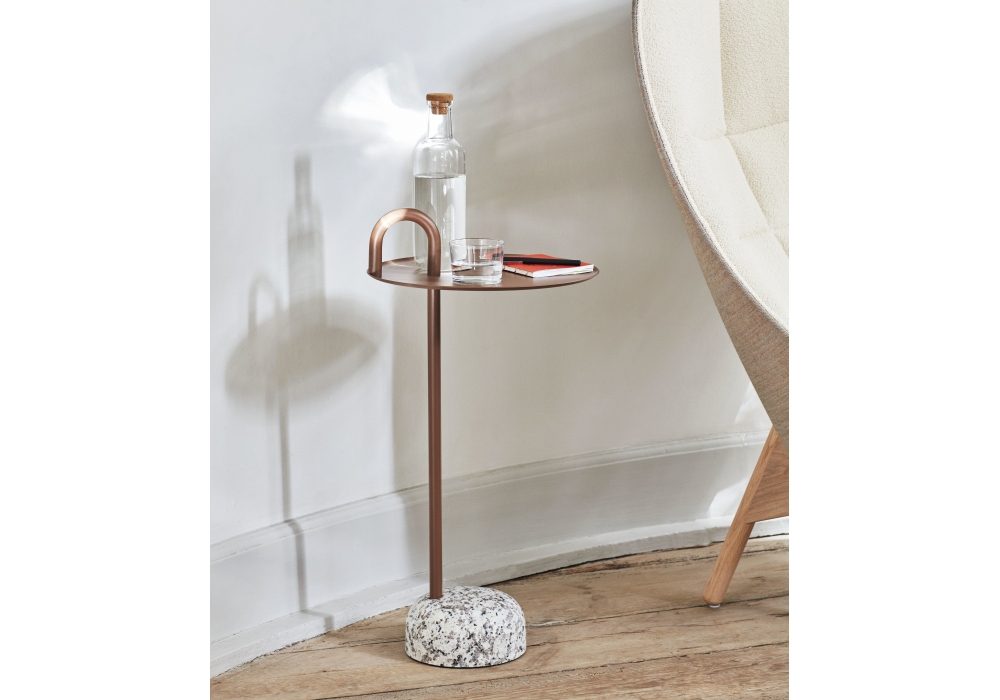 Bowler firmato da Shane Schneck per Hay è un tavolino d'appoggio realizzato con piano e stelo in acciao verniciato a polvere e base in granito. Disponibile in diverse finiture.