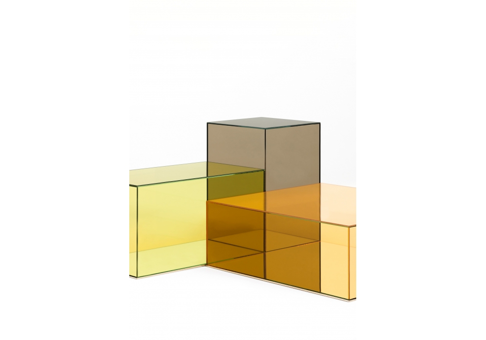 Donald firmato da Philippe Starck per Glas Italia è un tavolino a forma di parallelepipedo, realizzato in cristallo stratificato 3+3mm, perfettamente incollato a 45°, disponibile in tre misure e in diverse finiture. La base a specchio è rifinita perimetralmente da un sottile profilo in acciaio inox supersilver, che protegge il cristallo da eventuali urti.