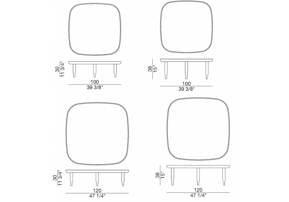| Dimensioni | 100 x 100 x H 30 cm; 100 x 100 x H 38 cm; 120 x 120 x H 30 cm; 120 x 120 x H 38 cm. |