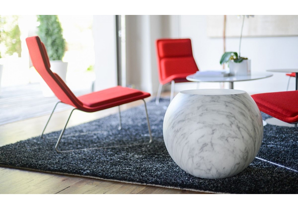 Bong firmato da Giulio Cappellini per Cappellini è un tavolino di forma sferica realizzato in fibra di vetro e resina. Disponibile verniciato opaco, con decorazione floreale, finto marmo oppure in finitura lavica.