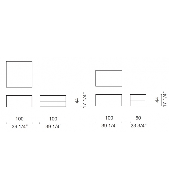 | Dimensioni | 100 x 100 x H 44 cm; 100 x 60 x H 44 cm |