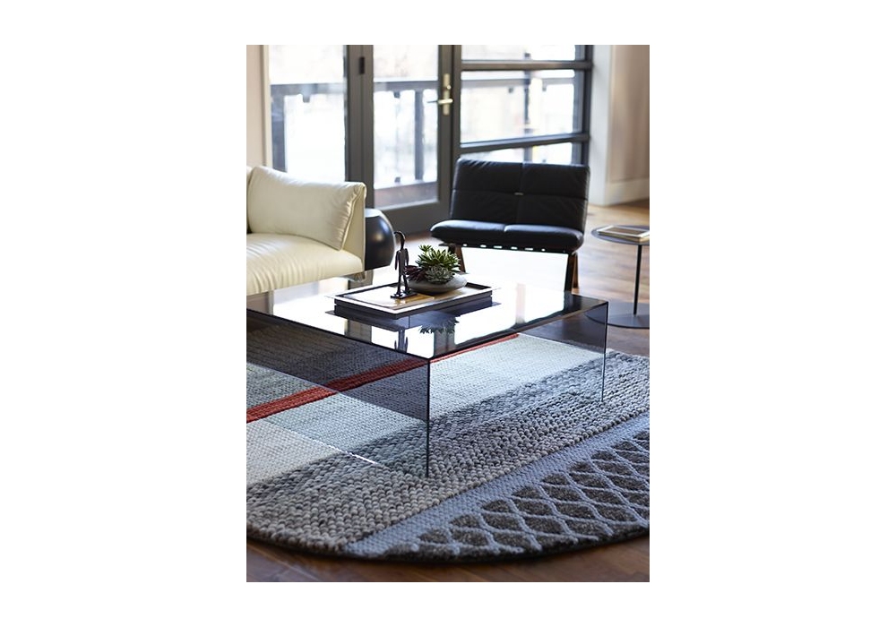 Smoke firmato da Marcel Wanders per Cappellini è un tavolino realizzato in vetro temperato fumè (piano e parte superiore fianchi) e trasparente (parte inferiore fianchi).