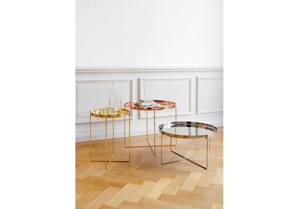 CM05 Habibi firmato da Philipp Mainzer per E15 è un tavolino realizzato a mano in ottone lucido, rame o acciaio inox. Il vassoio può essere rimosso dalla base ed utilizzato separatamente. Disponibile in diverse dimensioni e finiture.