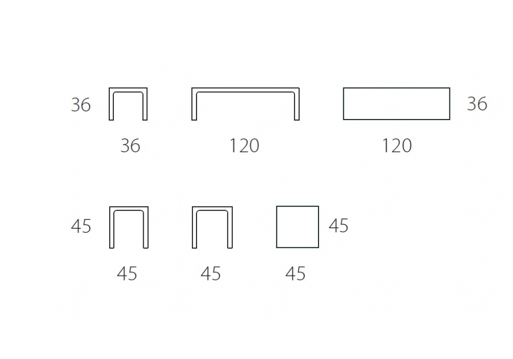 | Dimensioni | 45 x 45 x H 45 cm; 120 x 36 x H 36 cm. |