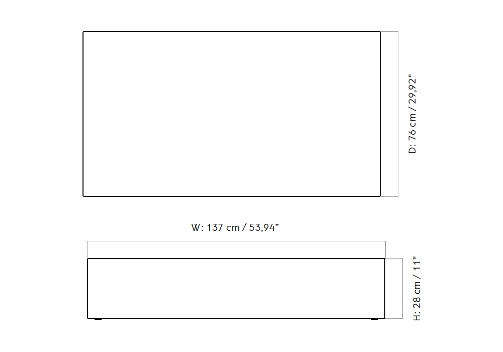 | Dimensioni | • 137 x 76 x H 28 cm |