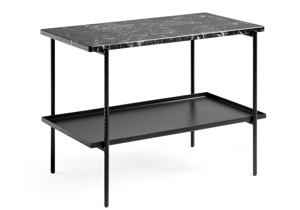 Rebar firmato da Sylvain Willenz per Hay è un tavolino d'appoggio con piano in marmo lucido con bordi smussati e vassoio in acciaio verniciato a polvere nera per la versione rettangolare. TStruttura in acciaio verniciato. Disponibile in differenti dimensioni.