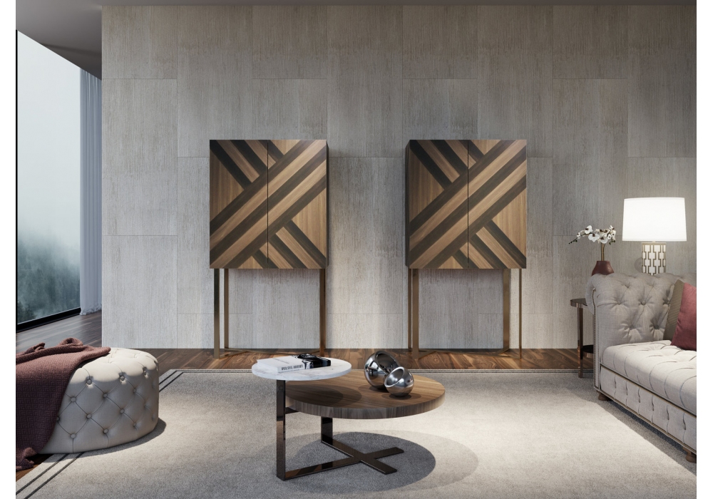 Two firmato e prodotto da Gual Design è un tavolino formato da due piani rotondi realizzati in ceramica con finitura marmo bianco e legno impiallacciato. Base in acciaio inox vernicicta color nickel. Disponibile in differenti finiture.