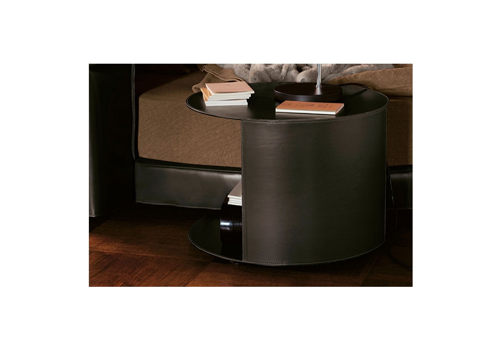 Clip firmato e prodotto da Ivano Redaelli è un tavolino di forma circolare interamente strutturato in metallo rivestito in cuoio pieno fiore disponibile in differenti finiture. Clip ha la base dotata di rotelle per facilitarne gli spostamenti.