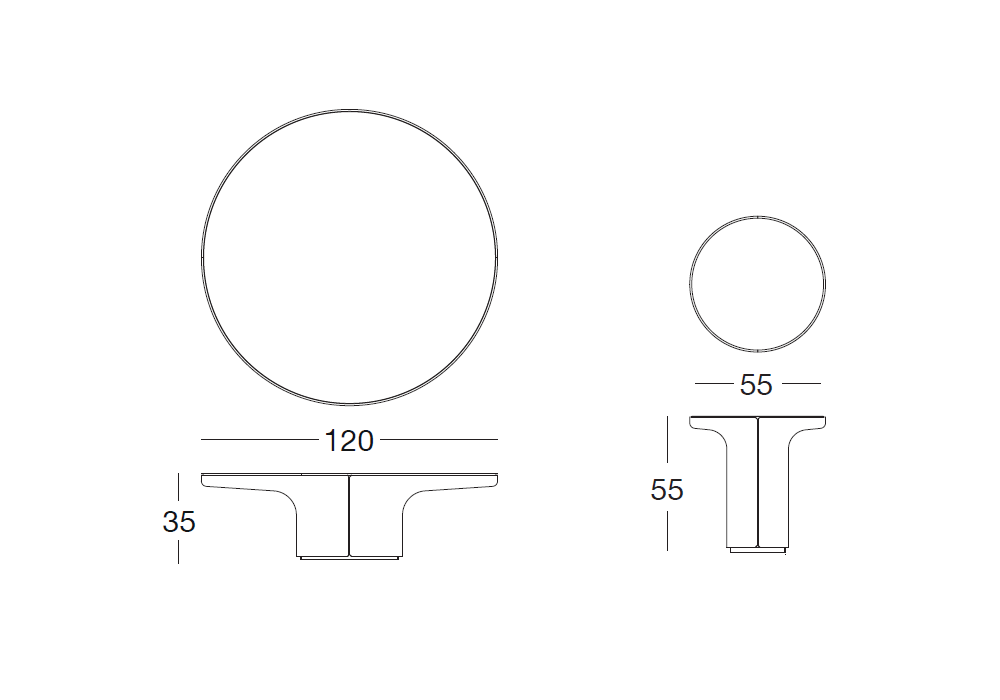| Dimensioni | Ø 120 x H 35 cm; Ø 55 x H 55 cm. |