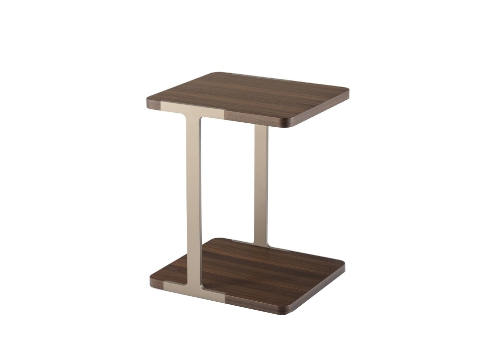 Domus firmato da Matteo Nunziati pr Turri è un tavolino d'appoggio con piano inferiore e superiore in legno impiallacciato di Eucalipto termotrattato. Struttura in metallo in finitura platino chiaro opaco.