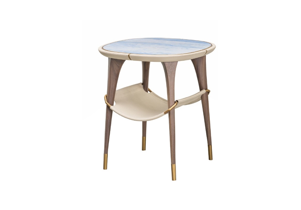 Melting Light firmato da Andrea Bonini per Turri è un tavolino d'appoggio con struttura in MDF e legno massello di noce. Piano in marmo o legno in diverse finiture con rivestimento in pelle. Parti metalliche in finitura oro o bronzo spazzolato. Disponibile nella versione con o senza tasca.