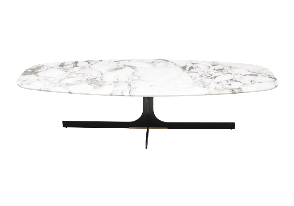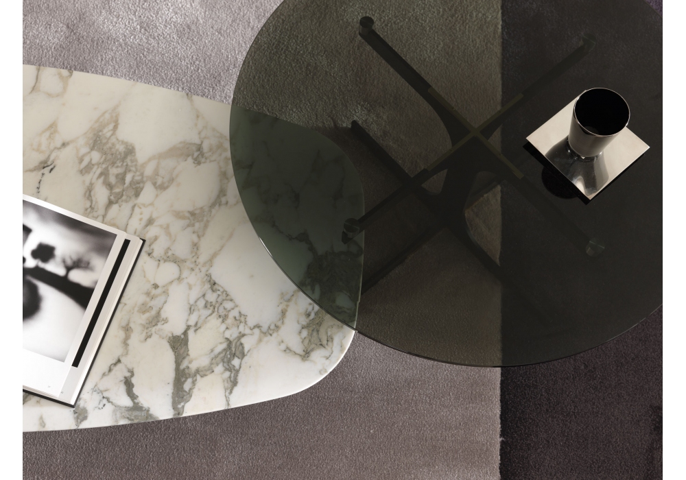 Janus firmato da Francesco Lucchese per MisuraEmme è un tavolino con struttura caratterizzata da un accoppiamento di due doppie”C” in metallo, in modo da formare una croce, in finitura verniciata nera/crociera oro, in base alla tipologia del tavolino. Piano in marmo in diverse finiture.