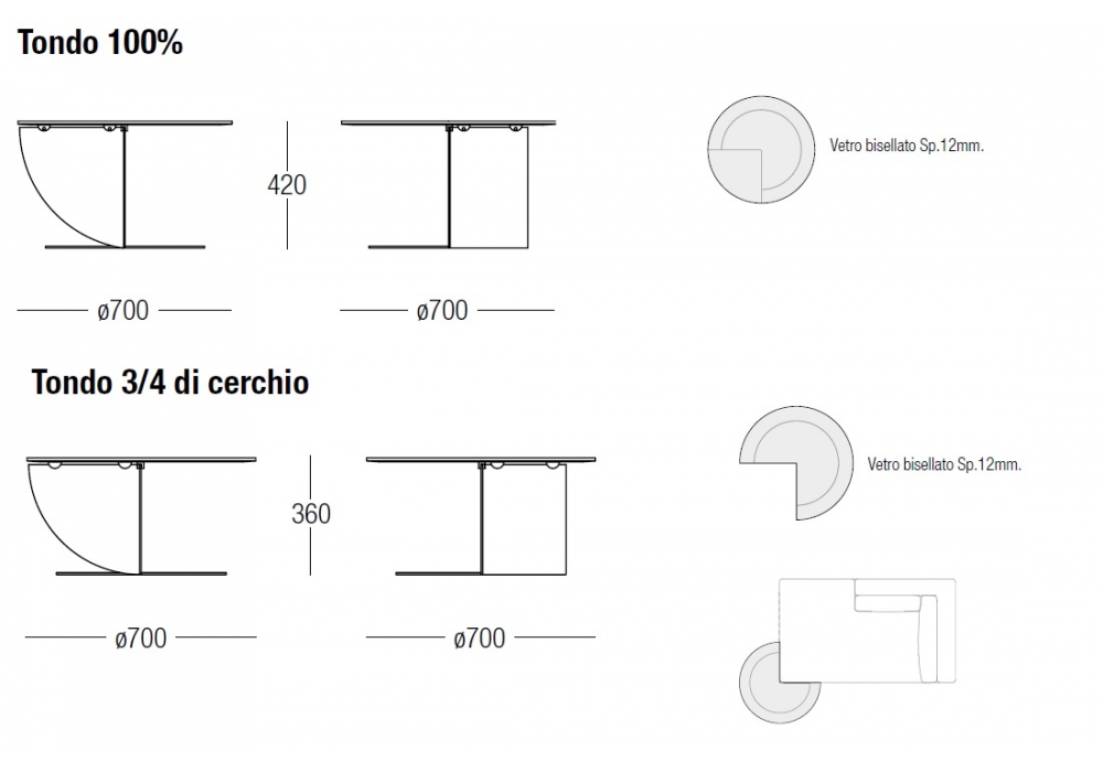| Dimensioni | Ø 70 x H 42 cm; Ø 70 x H 36 cm. |
