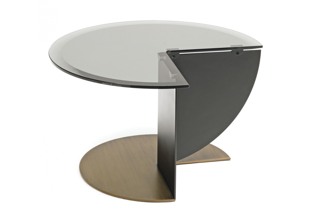 Rialto firmato da MisuraEmme è un tavolino con struttura costituita da cerchi e semi-cerchi in metallo, caratterizzato dall’avere la base in finitura verniciata ottone anticato e verniciata nera. Il piano in vetro può essere a cerchio intero 100% oppure a 3/4 di cerchio.