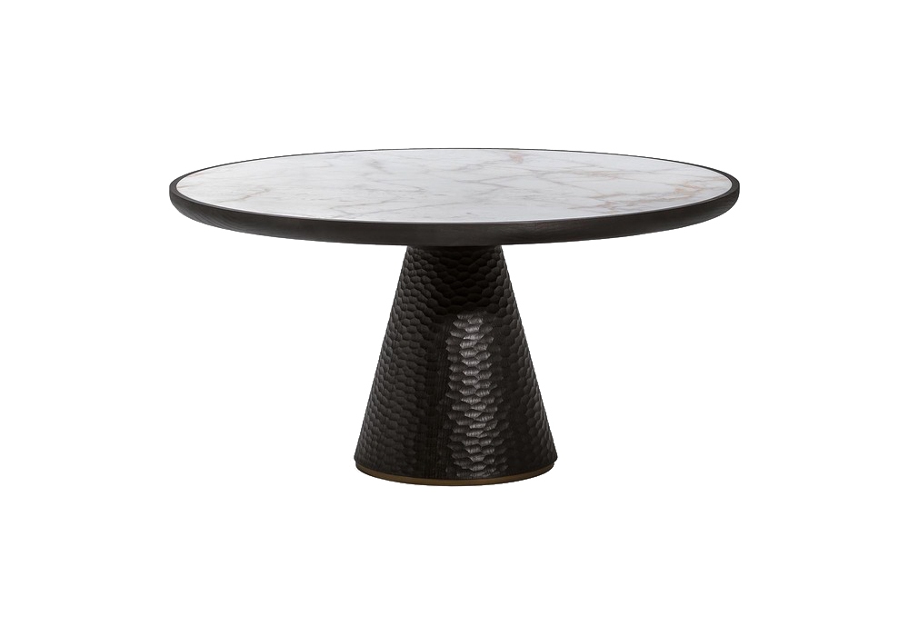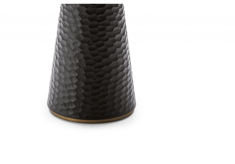 Duo Pedestal Table firmato da Roberto Lazzeroni è un tavolino composto da piano in marmo o vetro e struttura conica in massello di frassino tinto. È disponibile in diverse dimensioni e finiture.