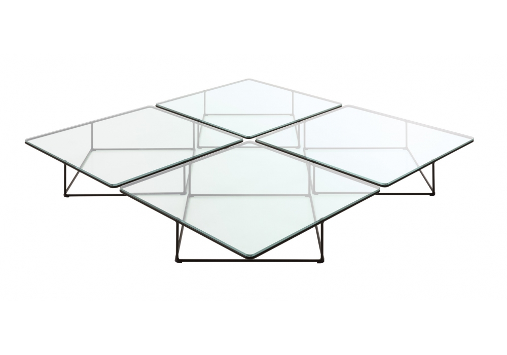 Lemante firmata da Kensaku Oshiro per B&B Italia è una collezione di tavolini con piano in vetro extra light trasparente o in vetro fuso e struttura in alluminio verniciato nero opaco. Disponibile senza piano inferiore oppure con piano inferiore in marmo nero Marquinia o laccato lucido.