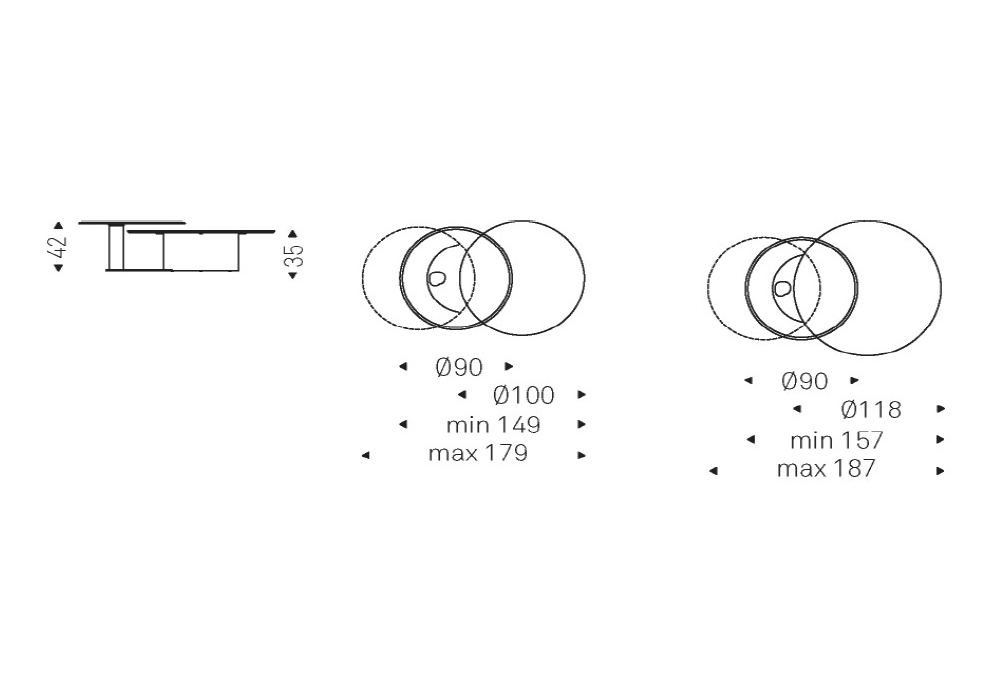 | Dimensioni | • Ø 100 x H 35 cm / Ø 90 x H 42 cm; • Ø 118 x H 35 cm / Ø 90 x H 42 cm |