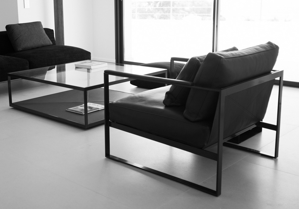 Monaco firmato da Broberg & Ridderstråle per Röshults è un tavolino con struttura in acciaio inossidabile, piano superiore in vetro e piano inferiore rivestito in pelle. Disponibile in diverse dimensioni.