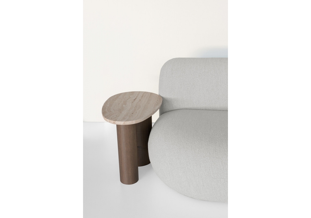 Jade firmato da Hanne Willmann per Potocco è un tavolino d'appoggio con doppia base in legno di frassino e piano in svariate tipologie di marmo.