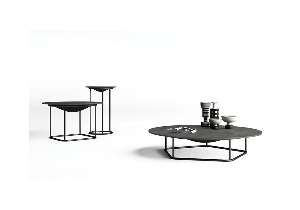 Circus firmato da Studio 14 per Minotti Italia è un tavolino con piano in cemento e struttura in metallo. Disponibile in diverse finiture.
