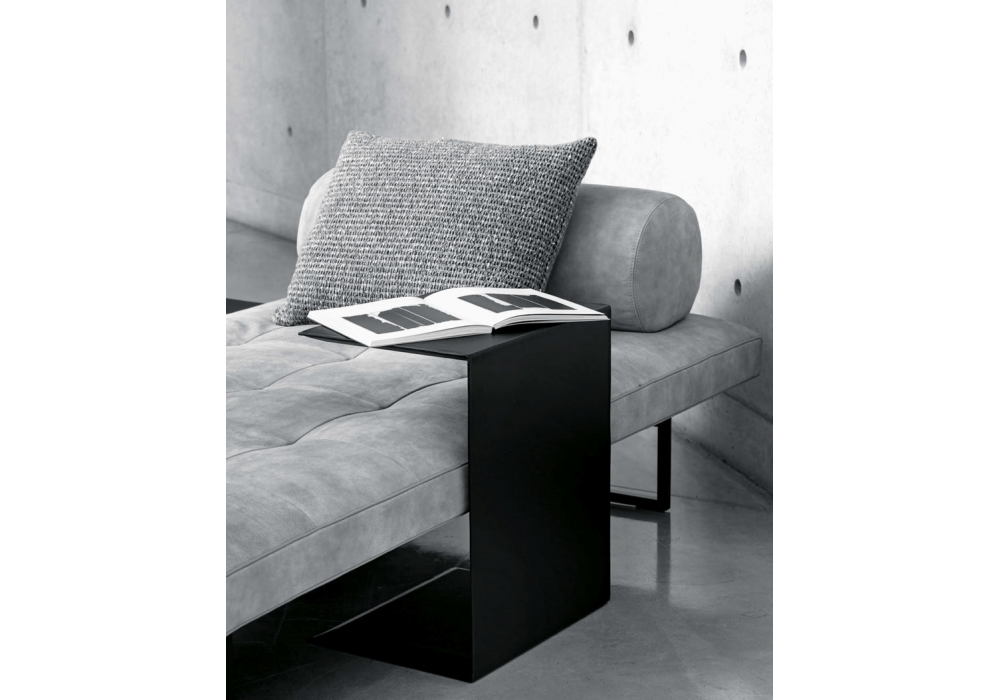 Ludwig firmato da Roberto Gobbo per Désirée è un tavolino d'appoggio con struttura in alluminio grecato verniciato bronzo opaco e piano in MDF rivestito in cuore fiore corretto.