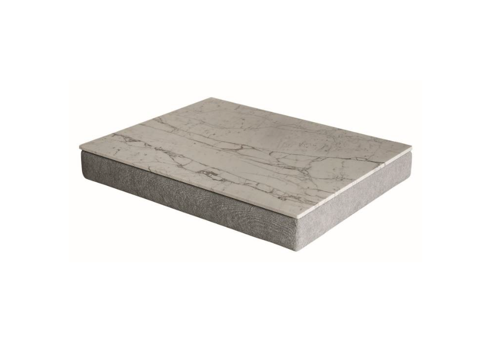 Pillopipe Evo firmato da Paola Navone per Casamilano è un tavolino d'appoggio con struttura in massello di abete e multistrato di pioppo con imbottitura in poliuretano espanso e rivestimento in tessuto o pelle. Il pinao è realizzato in marmo.
