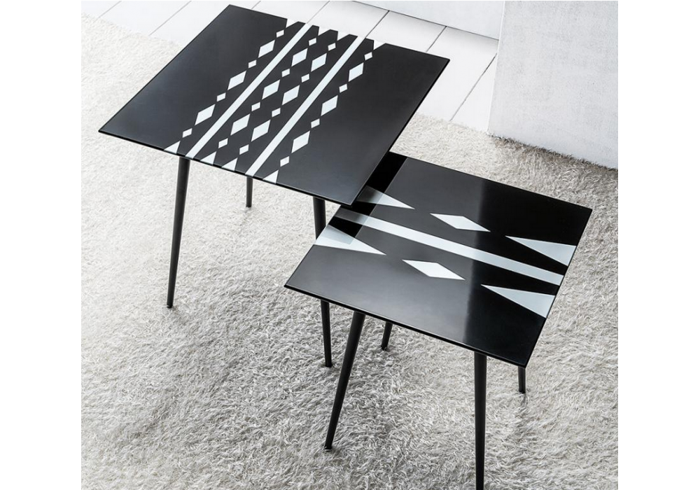 Suitable BN firmato da Lia Bosch, Painter per Casamilano è un tavolino d'appoggio con piano in MDF decorato con stampa digitale e base in metallo verniciato nero.