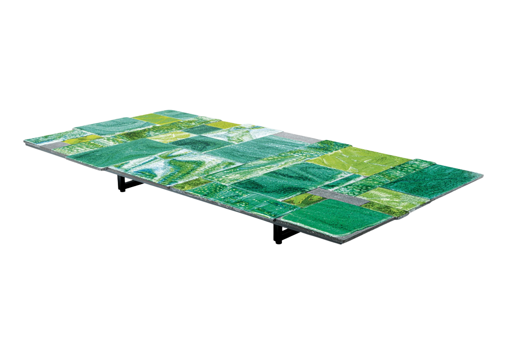 Sciara Mottainai firmato da Marella Ferrera per Paola Lenti è un tavolino basso disponibile in diverse dimensioni e finiture. Struttura in acciaio inox AISI 304 verniciato opaco in color grigio lava, puntali in materiale plastico. Ogni tavolino è un pezzo unico, realizzato miscelando elementi recuperati da produzioni precedenti secondo un criterio estetico, che ne valorizza ogni singolo componente, e concettuale, che riprende la filosofia del “non spreco” alla base della collezione Mottainai.