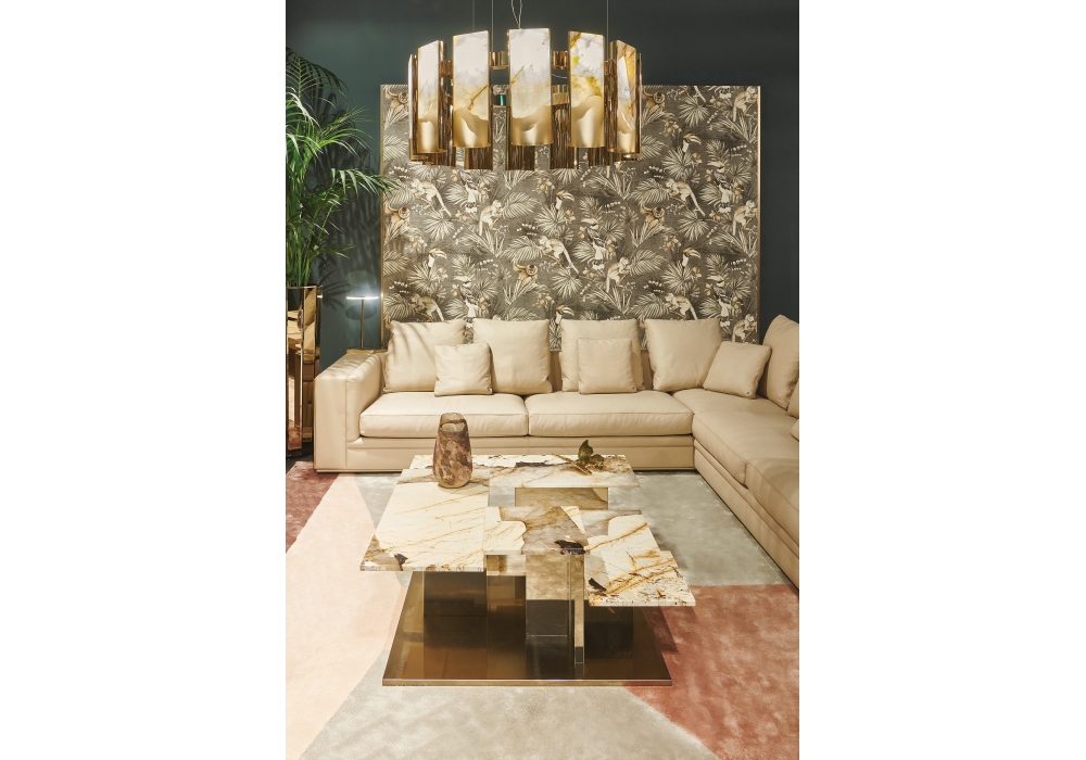 Building firmato da Alessandro La Spada per Visionnaire è un tavolino con cinque ripiani in marmo quadrangolare ad altezze differenziate. La struttura portante principale è in legno rivestito in acciaio inox supermirror mentre la base è di forma quadrangolare in metallo satinato. Building è disponibile in differenti finiture.