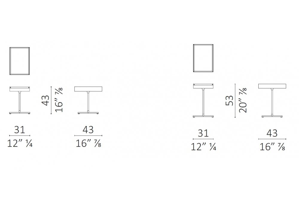 | Dimensioni | • 43 x 31 x H 43 cm; • 43 x 31 x H 53 cm |