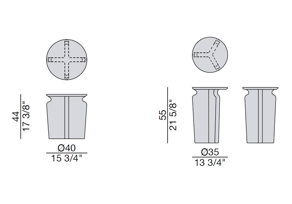 | Dimensioni | • Ø 40 x H 44 cm; • Ø 35 x H 55 cm |