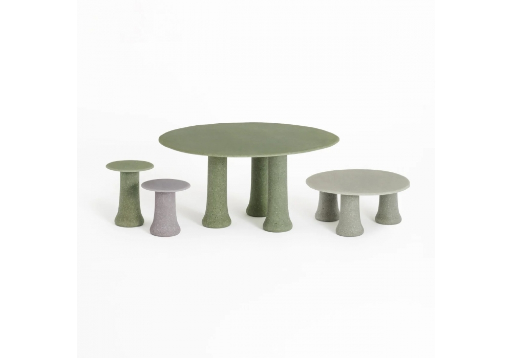 Babar firmato da Patricia Urquiola per Glas Italia è un tavolino di forma tondeggiante in uno speciale conglomerato di graniglia e scaglie di vetro riciclato. Le gambe sono di forma cilindrica un po' svasata nella zona di appoggio. Babar è disponibile in differenti dimensioni e finiture.