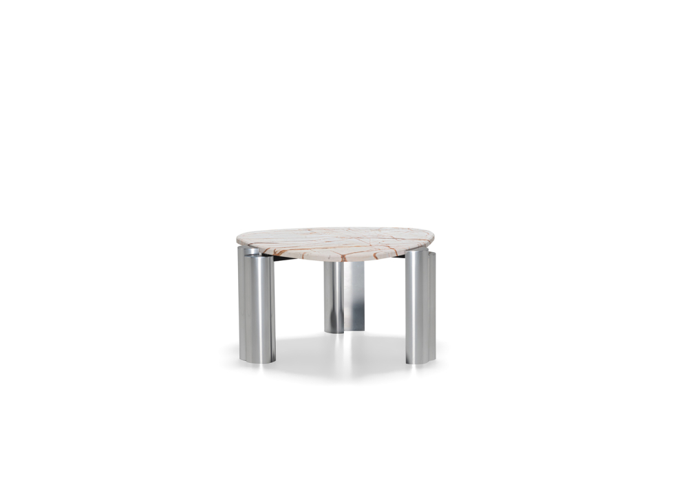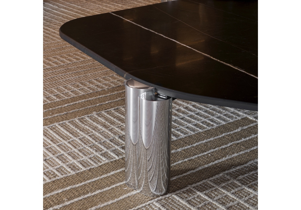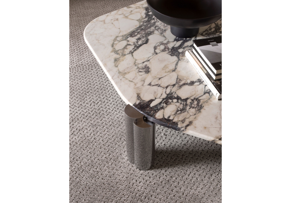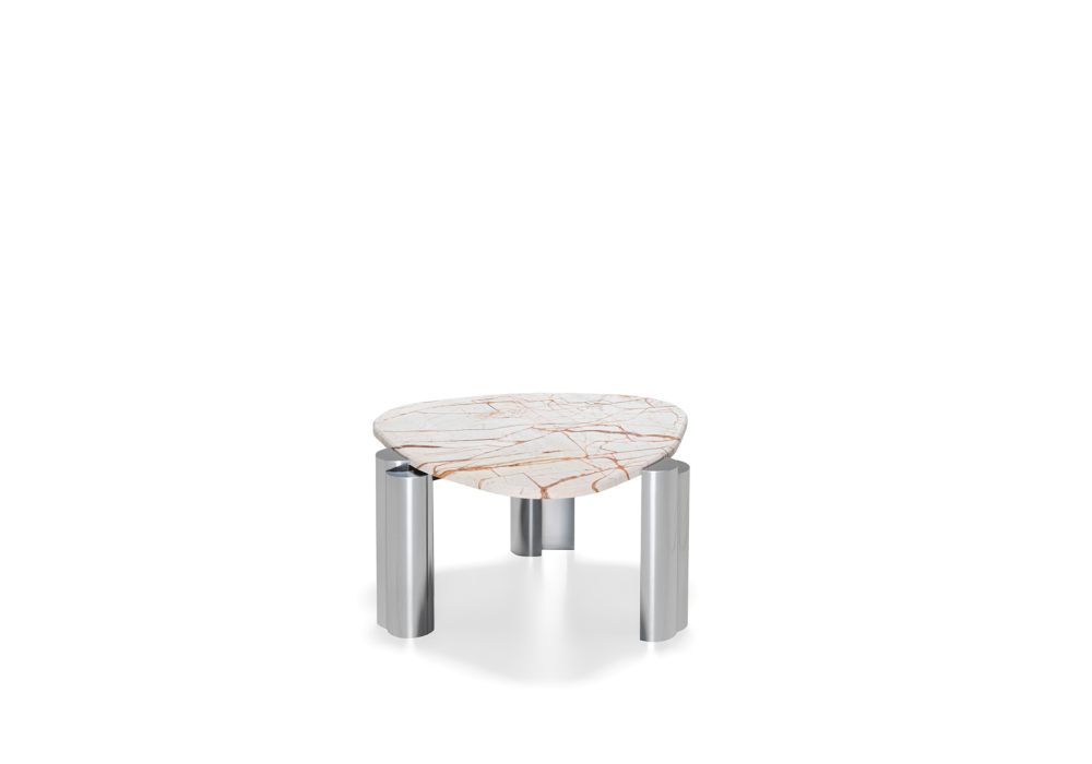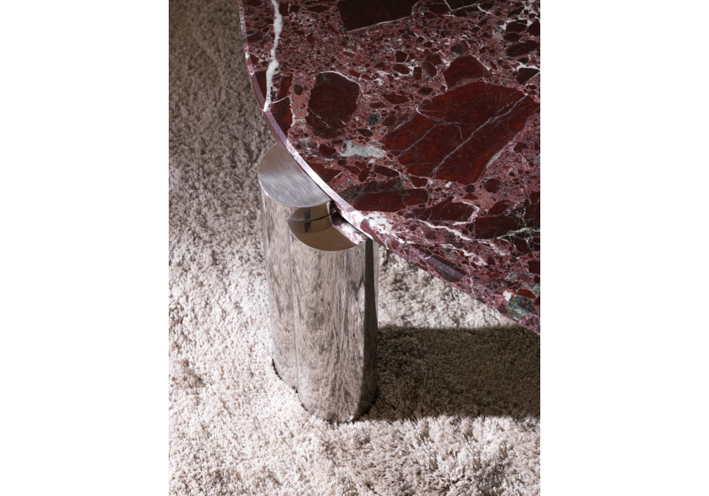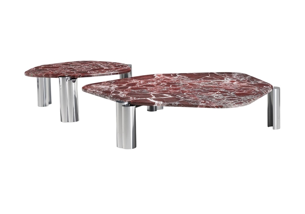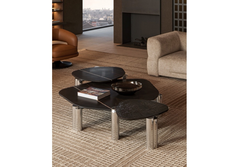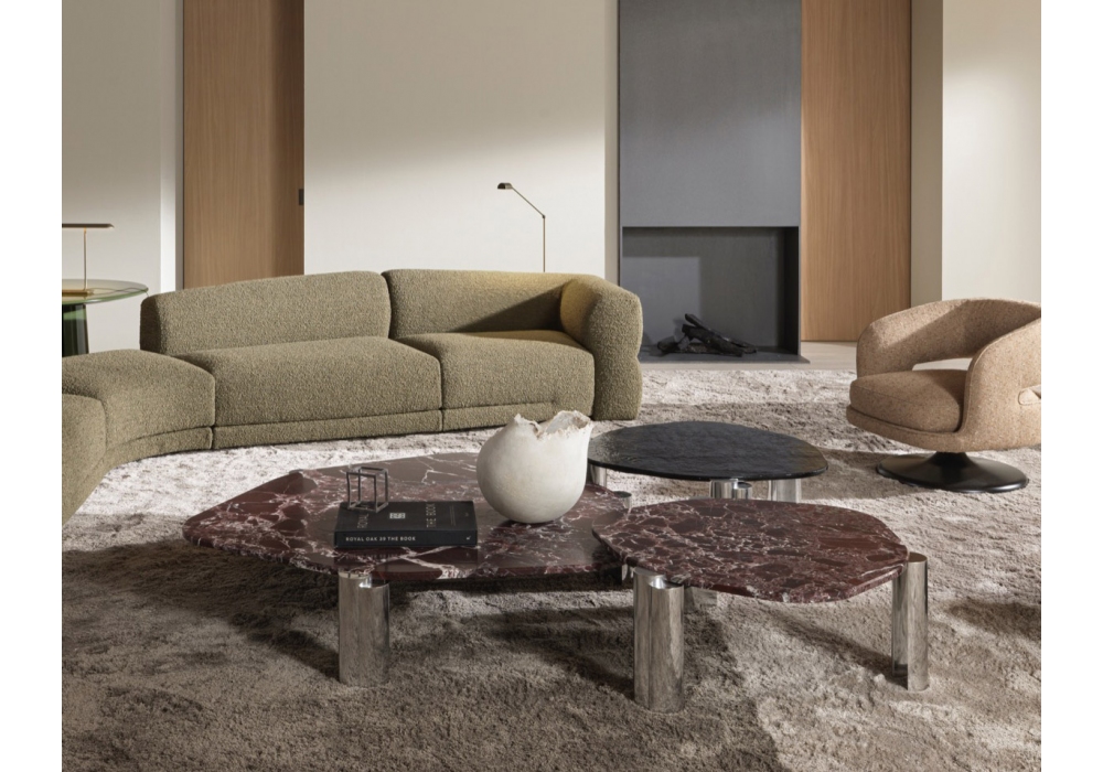 Maylis firmato da Christophe Delcourt per Molteni&C è un tavolino con piano esagonale multiforme, disponibile in marmo, vetro temperato e laccato lucido. Tre gambe di sostegno in alluminio lucido, a forma di mezzaluna, creano un contrasto visivo con i materiali del piano. Disponibile anche in diverse dimensioni.