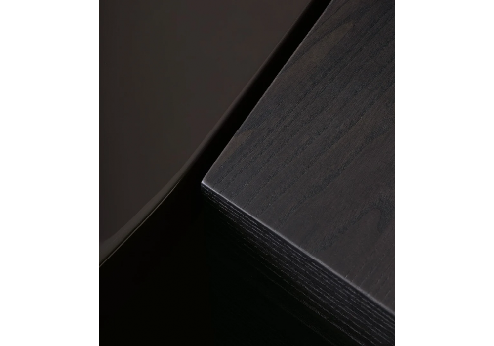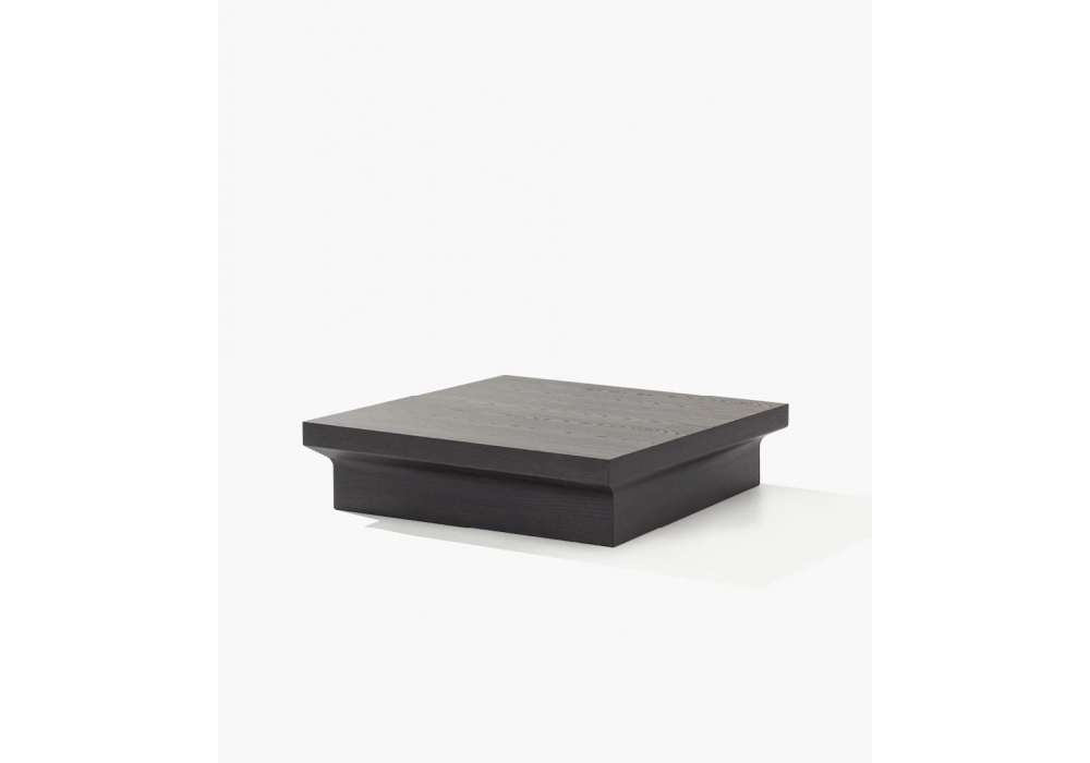 Joan firmato da Jean Marie Massaud per Poliform è un tavolino con struttura e piano in pannello di fibra a media densità impiallacciato frassino tinto olmo nero, laccato lucido colori o acciaio lucido.