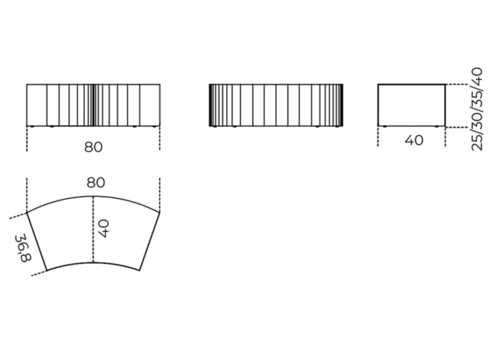 | Dimensioni | 80 x 36,8 x H 25 cm; 80 x 36,8 x H 30 cm; 80 x 36,8 x H 35 cm; 80 x 36,8 x H 40 cm. |