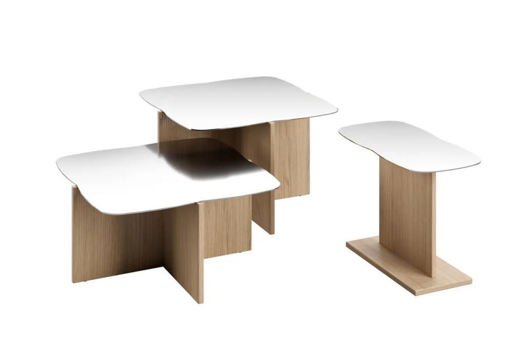 Tufty-Time 20 firmato da Patricia Urquiola per B&B Italia è un tavolino con struttura in legno di rovere in varie finiture e piano in alluminio anodizzato brill.