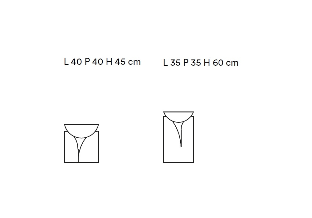 | Dimensioni | 40 x 40 x H 45 cm; 35 x 35 x H 60 cm. |