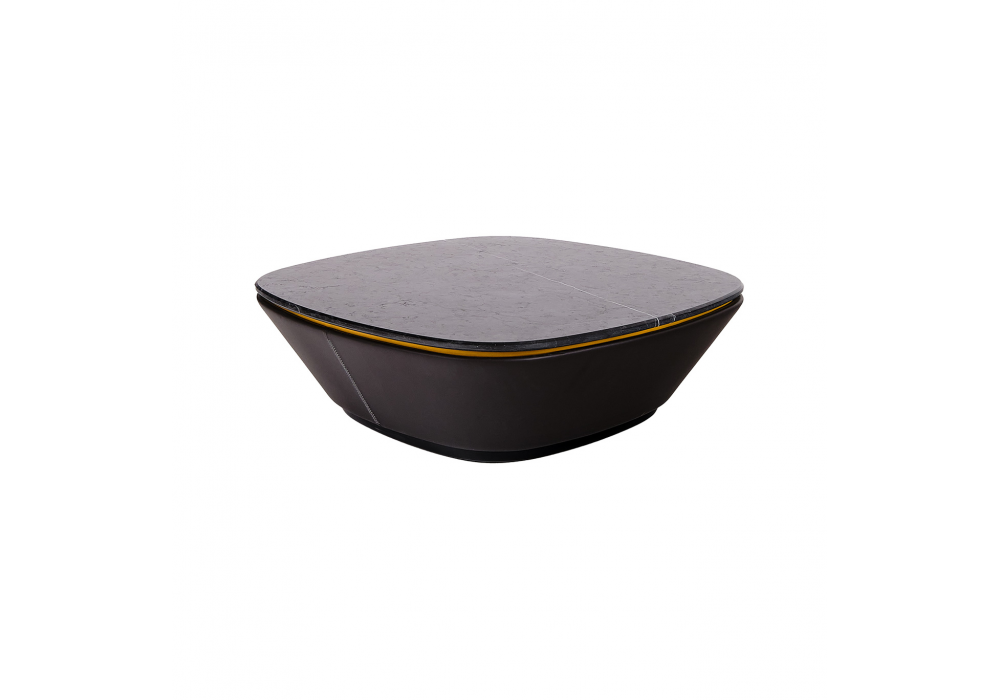Accento firmato da Vista Alegre è un tavolino realizzato con struttura in legno e piano pietra marquina. Disponibile in diverse dimensioni.