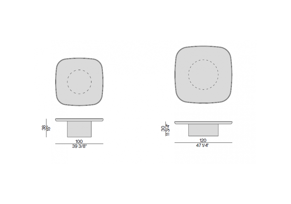 | Dimensioni | 100 x 100 x H 38 cm; 120 x 120 x H 30 cm. |