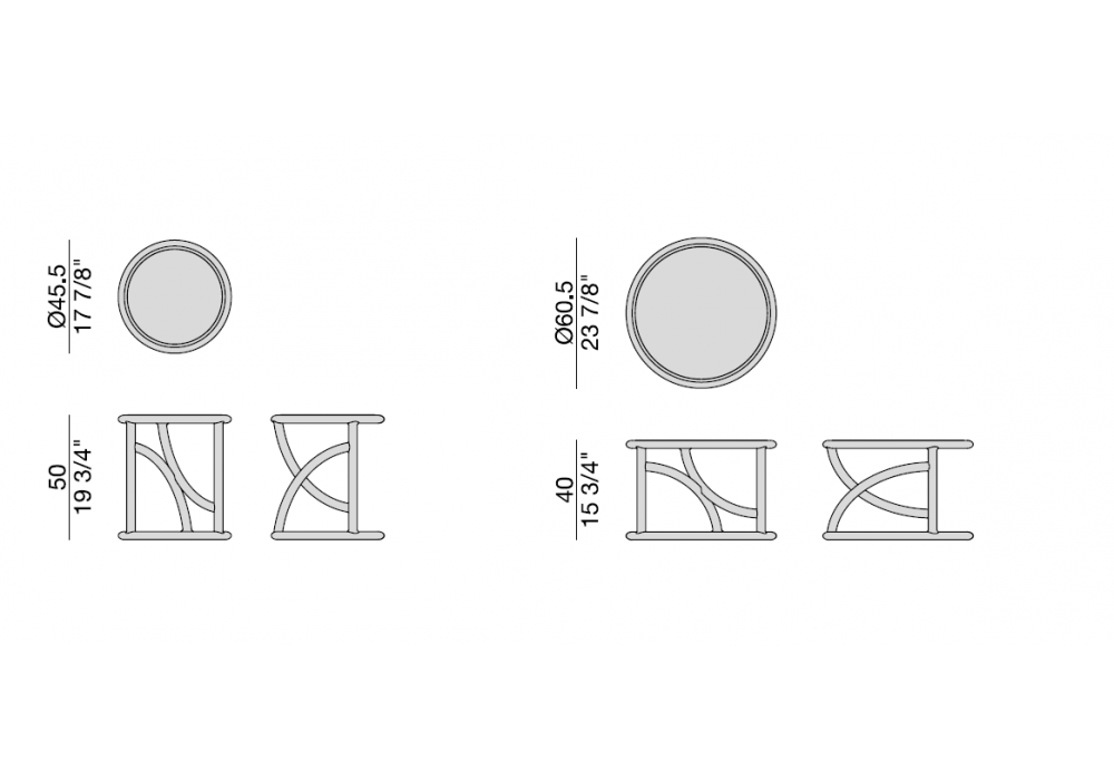| Dimensioni | Ø 45.5 x H 50 cm; Ø 60.5 x H 40 cm; |