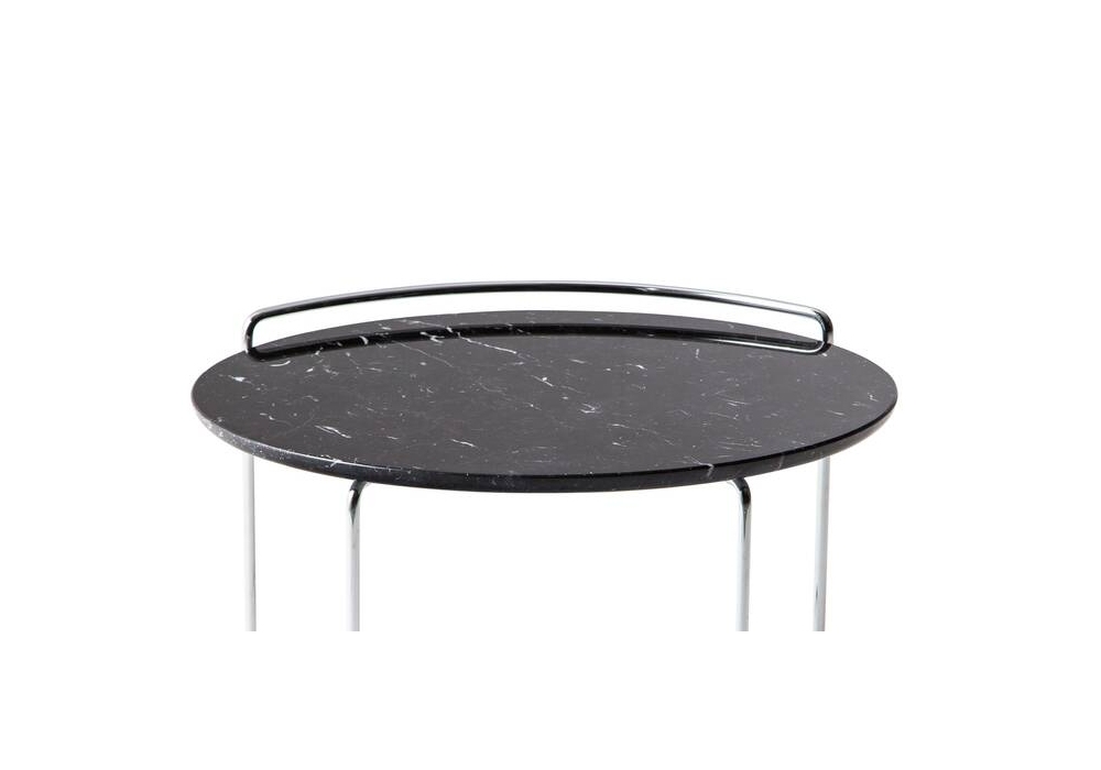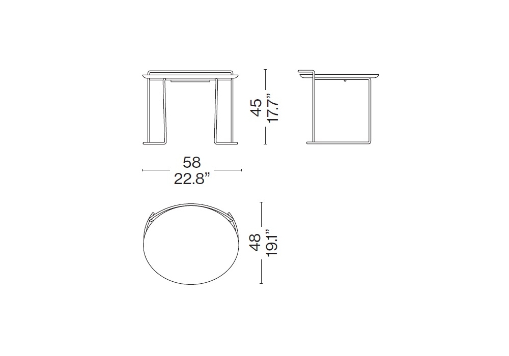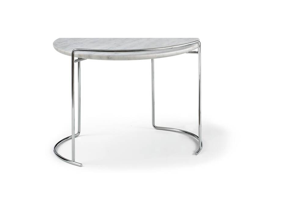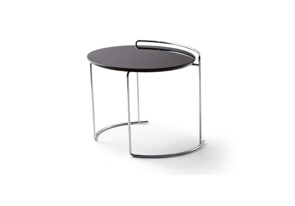 W61 Djuna firmato da Kazuhide Takahama per Cassina è un tavolino realizzato con telaio in tondino d’acciaio piegato e cromato e piano verniciato con effetto lucido specchiante o opaco oppure in marmo.