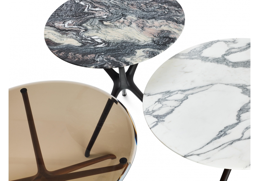 Croix De Bois Alto di Ceccotti Collezioni è un tavolino realizzato in legno massello di noce americano, piano in vetro 10 mm temperato, ottone brunito o piano in marmo.